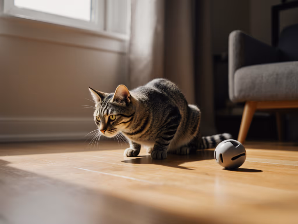 Conventional cat toys often fail in small spaces for three critical reasons: they're too large, too loud, or too quickly ignored. When cats can't complete their predatory sequence in appropriate ways, they channel that energy into behaviors like 3 AM counter-surfing or door-dashing, problems that become magnified when walls are close together. Quiet moving toys solve this by providing autonomous stimulation that respects sound-sensitive environments (for both cats and humans) while occupying minimal physical space. Unlike traditional laser pointers (which we avoid due to the missing food finish), these systems offer independent engagement without sacrificing the essential conclusion to the hunt. For background on why finishing the hunt matters, read our prey sequence play primer.