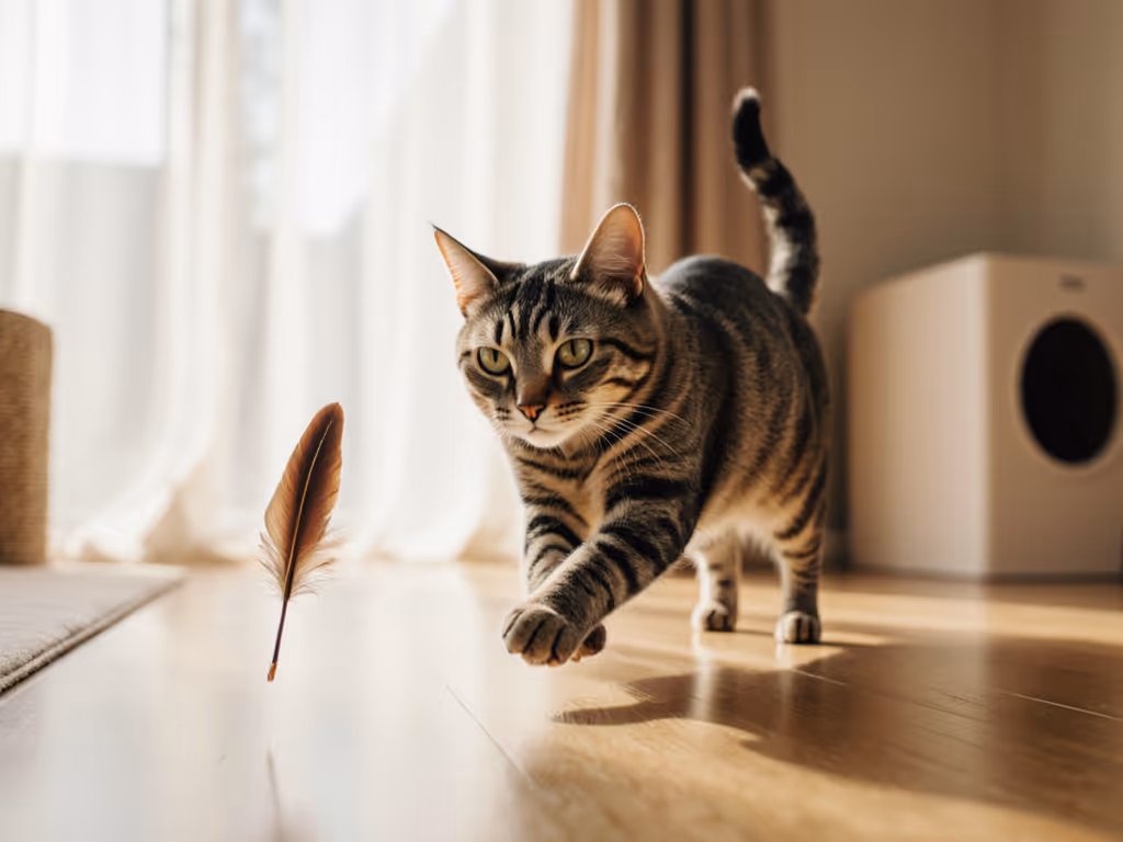 Play isn't about exhausting your cat (it's about fulfilling their predatory sequence). When sessions end with satisfaction, not frustration, you'll see fewer night zoomies and counter-surfing incidents. Your cat rests deeply; your home stays calm.